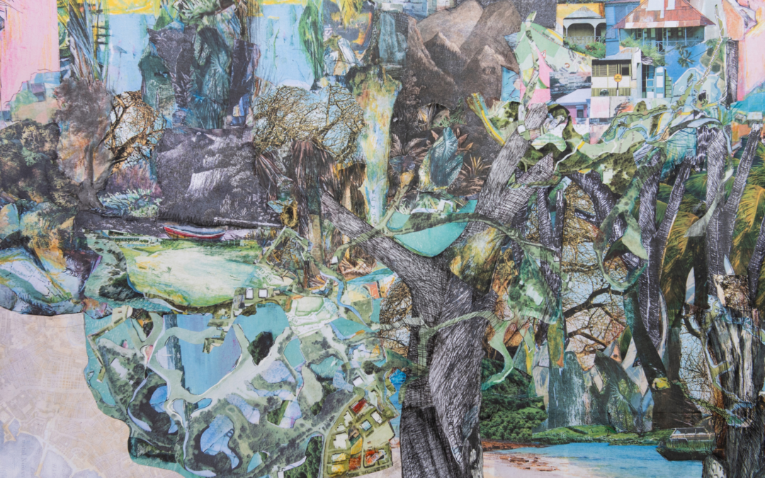 Ming’s new suite of works on show are deeply rooted in Bermuda’s history and culture as well as Ming’s memories of growing up on the island. While Ming is locally known best for his sculptural and assemblage works, this new body of work, created between 2023-24, focuses on Ming’s collage practice. An important element of his artistic oeuvre for many years, Ming’s collages incorporate maps, popular images, scans of foraged foliage, pages from books, and even elements from old works. Created in his studio in Newark, UK, where he has lived since the 1970’s, this new body of work is in many ways a return home to Bermuda for the 80-year-old artist.