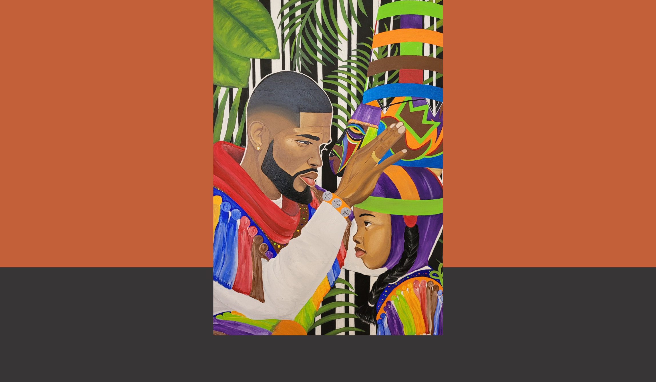 Meet and hear from Bermudian multidisciplinary artists Vaughronde’ and Lisa Joseph, on their work featured in the exhibition Identity. Vaughronde’ and Lisa Joseph are key members of the Island’s Gombey community and established the Vibe Tribe group in 2023. Lisa is passionate about contributing to Gombey culture through the design and creation of performers’ regalia, and Vaughronde’ first found his love for the arts through Gombeys, now having over 27 years of experience dancing in Gombey troupes.