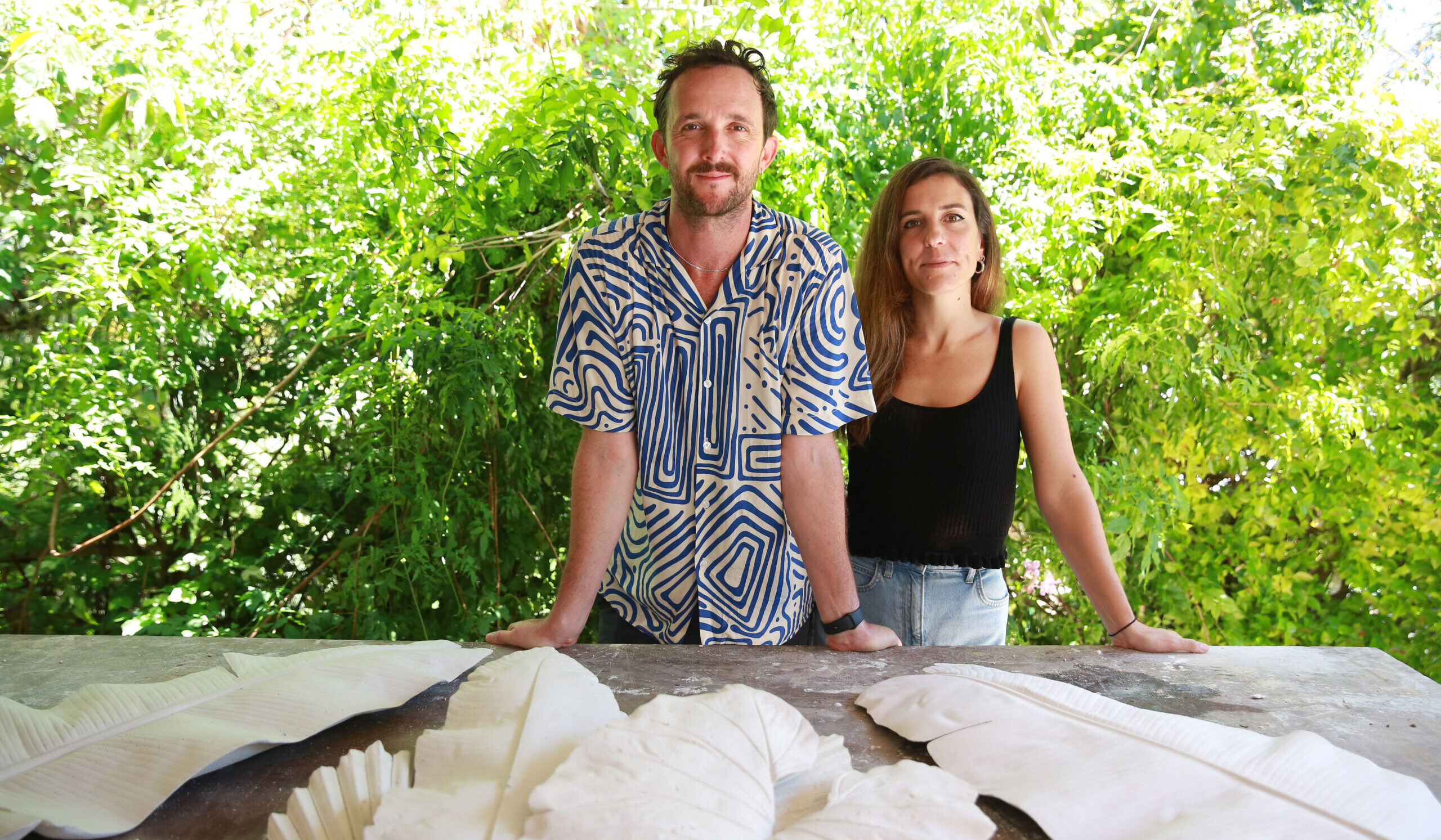 Claire is a psychotherapist and an artist who has a passion for exploring themes of psychology, nature, and identity through various media and modalities. Stratton is a Bermudian multidisciplinary artist who focuses on social and environmental issues, blending art and design to inspire change. Stratton has been developing his practice in fossilizing local flora for several years and when his wife, Claire, moved to the island they began collaborating and explored larger compositions together.