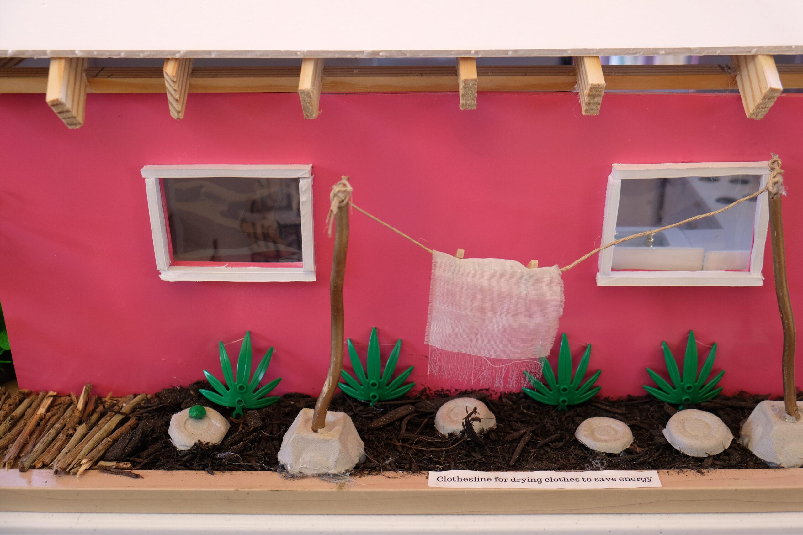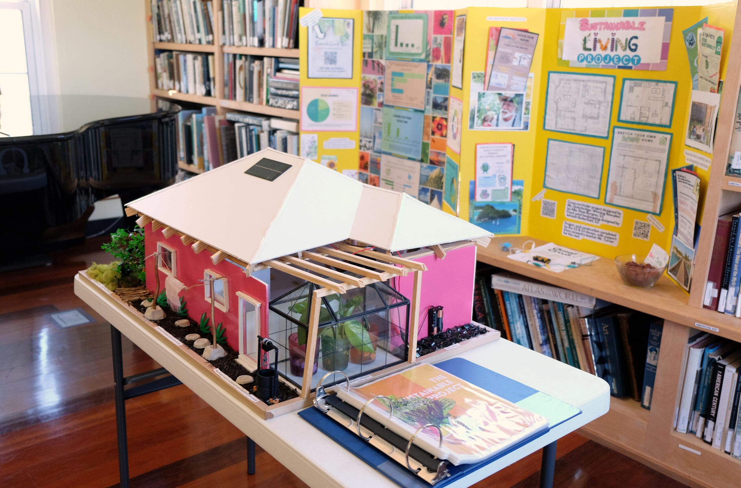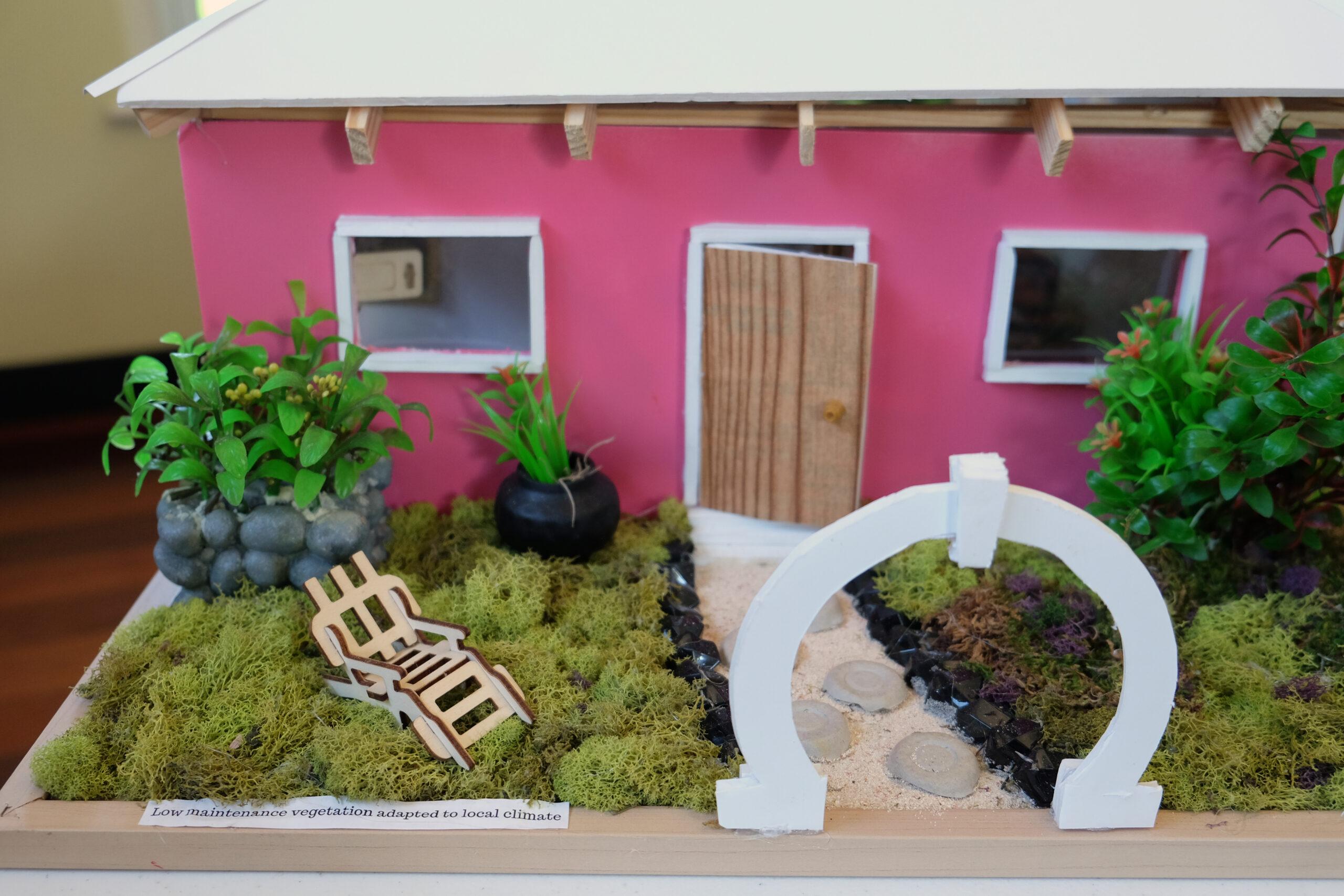 For this project, after 6 weeks of intensive learning, about 20 students ranging from S1 to S3 competed against each other to create the floorplan that would be used to build the model. They voted as a group, and Alla-Shae Burgess, S3 stood out as the winner. Her floor plan was neat, creative, well-labeled, eco-conscious, and even included a bay window. The building of the model was a collaborative effort from all students but most impressive was the landscaping done by Jahziah Butterfield, S3.