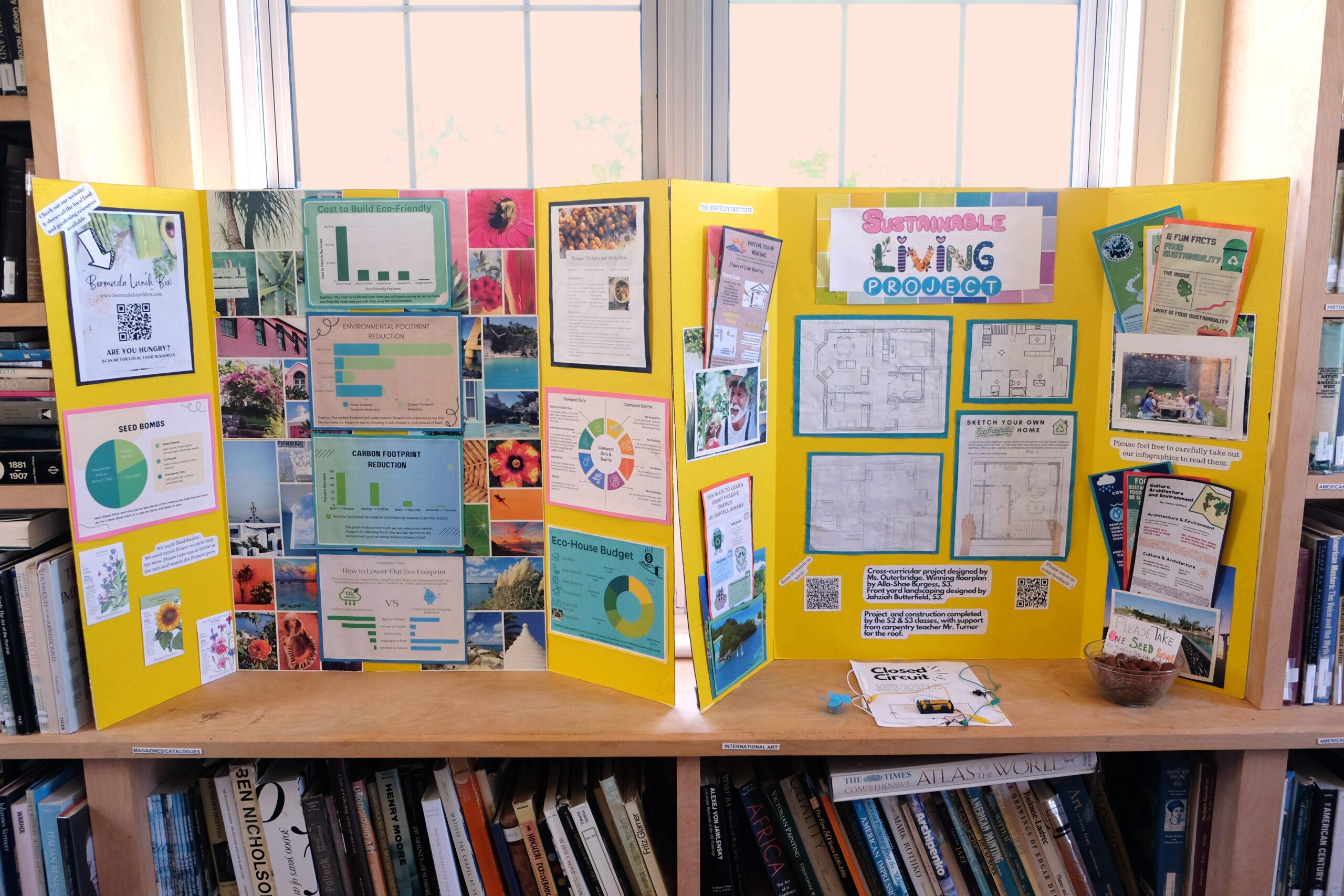 Students in Ms. Diamond Outerbridge Learning Support Classes at The Berkeley Institute have participated in The Sustainable Living Project, which builds on previous projects which have centered around two classroom themes; futurism and sustainability. These themes have taken the classes from creating pamphlets on local medicinal & edible plants, to designing and publishing a website that connects the community to all local food and gardening resources (www.bermudalunchbox.com) to building their own model of an eco-friendly, passive-energy Bermuda home that celebrates Bermudian culture and sustainability. Each of these projects, designed by Ms. Outerbridge, to be cross-curricular involving math, science, history, art, and architecture to demonstrate how real-world problems require skills in many subjects, along with critical thinking, to solve.